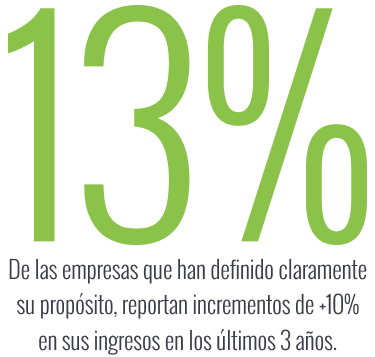 De las empresas que han definido claramente su propósito y que además es comprendido por sus colaboradores, se descubrió que en los últimos 3 años han reportado un crecimiento de sus ingresos de más del 10%.