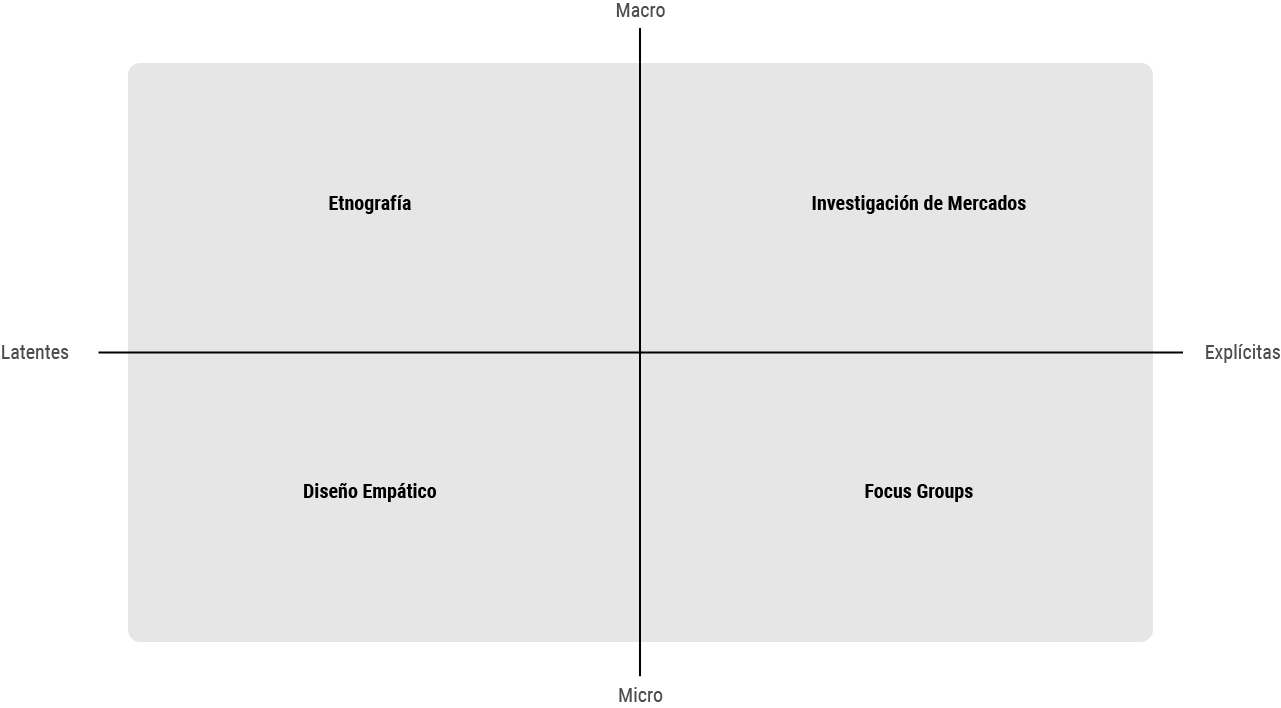 A diferencia de las investigaciones de mercado tradicionales, donde se hacen preguntas específicas y muy prácticas, las investigaciones antropológicas utilizan la observación y escucha de una manera no dirigida para así entender los comportamientos de las personas.