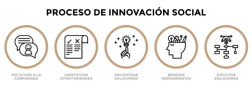 Nuestra firma de consultoría ha diseñado un proceso de innovación social que crea las competencias en las personas de las comunidades junto al esfuerzo de otras personas a cargo de instituciones y entidades estatales y locales, así